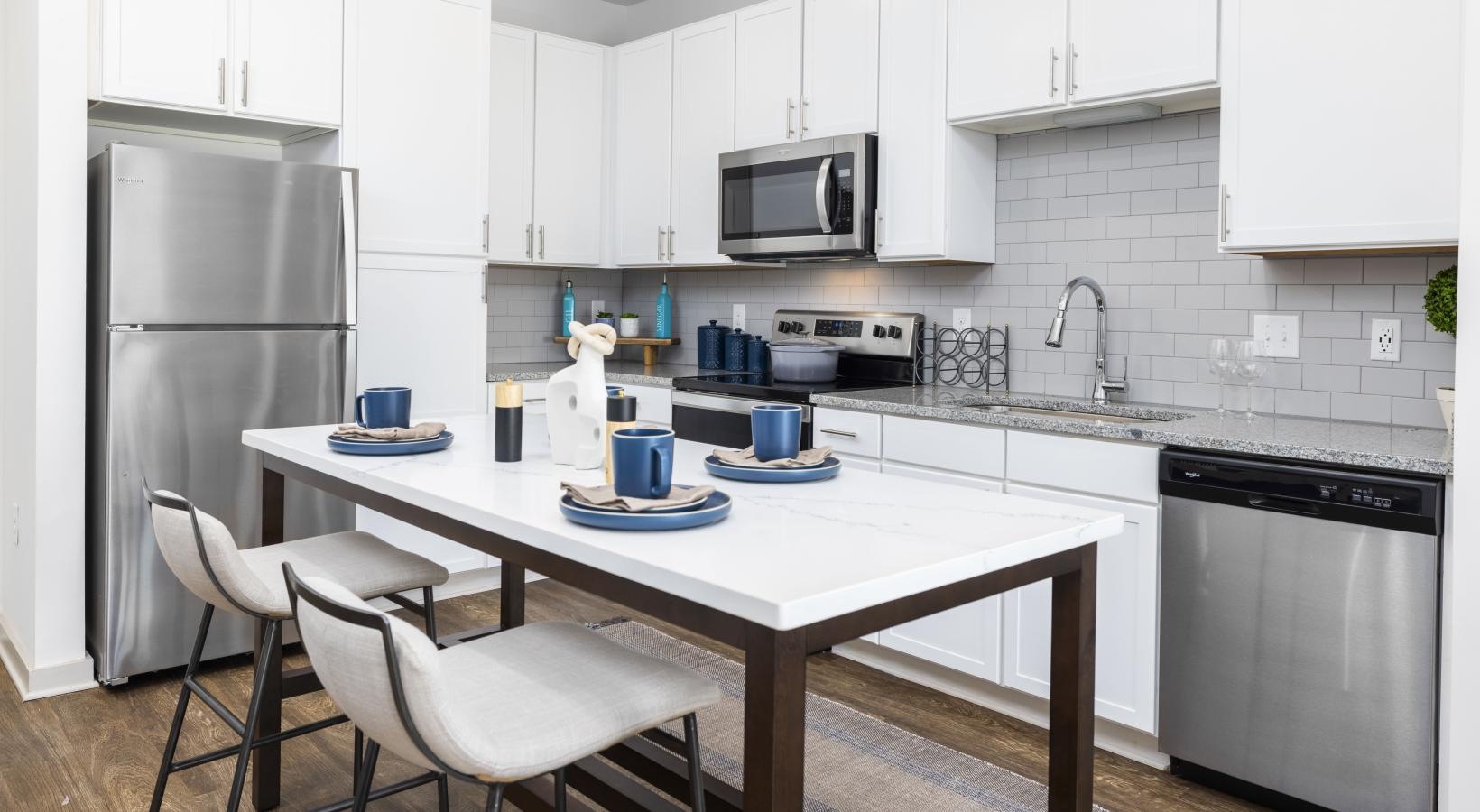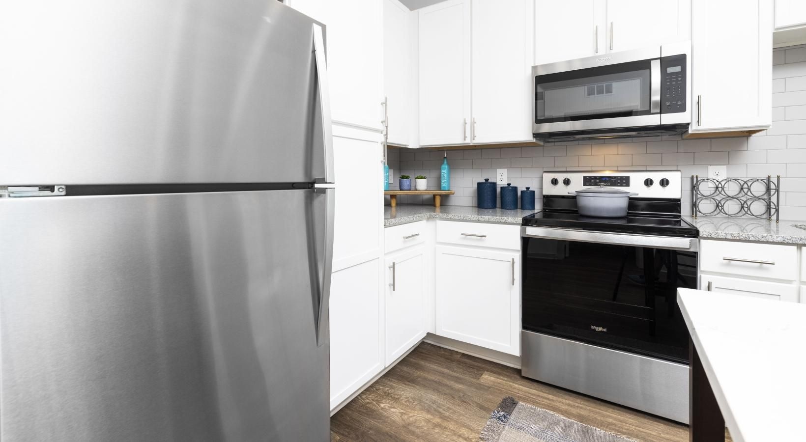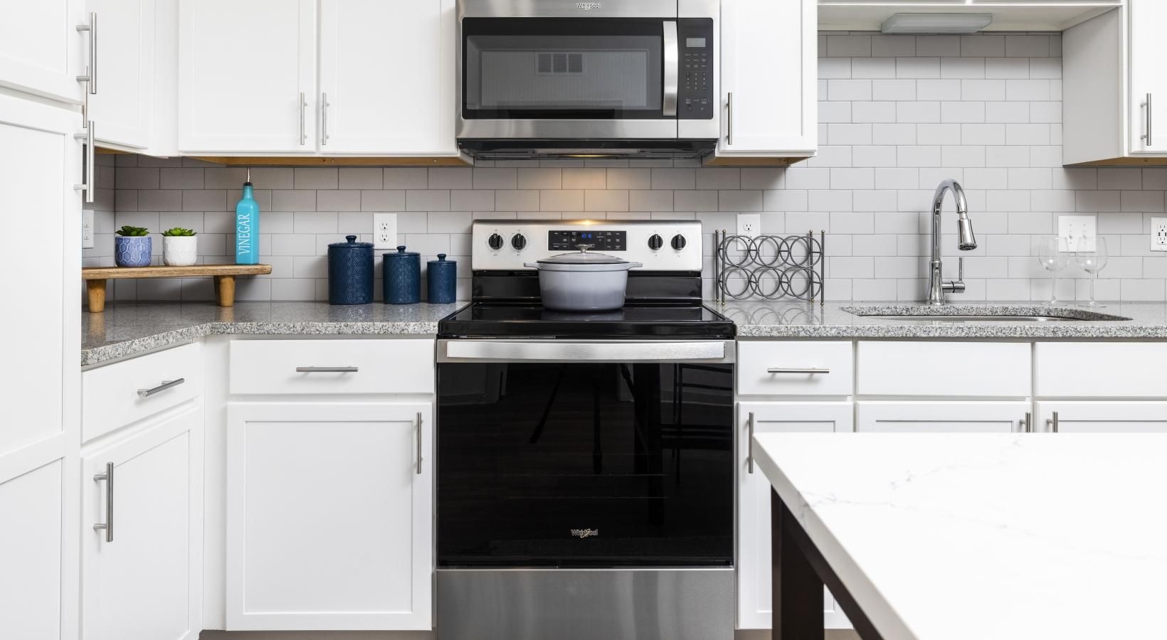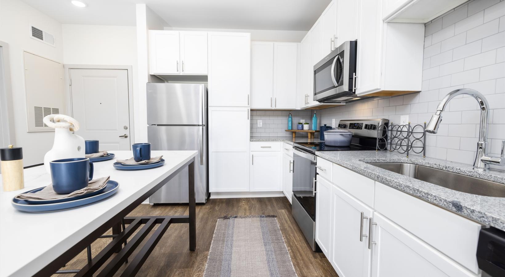 • a kitchen with white cabinets