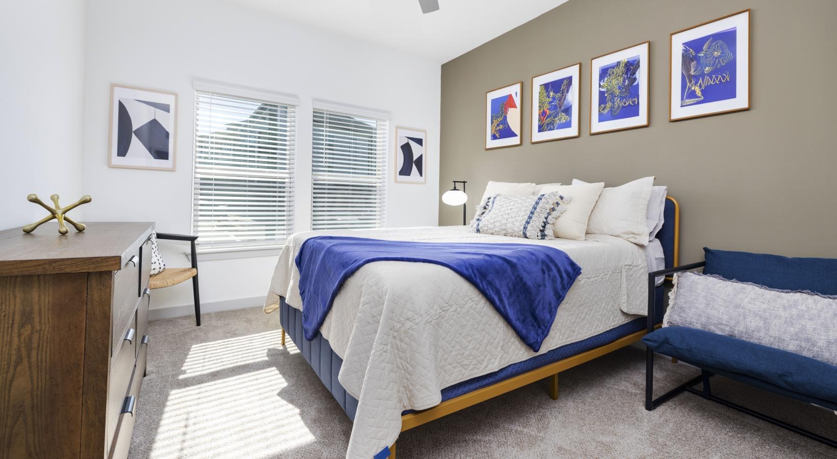 • a bedroom with a bed and a dresser