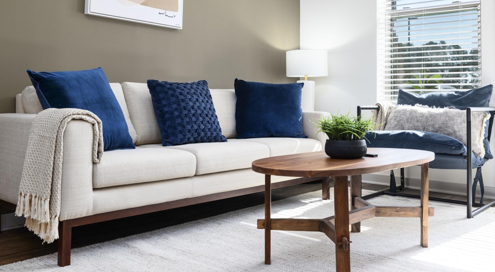 • a living room with a couch and a coffee table