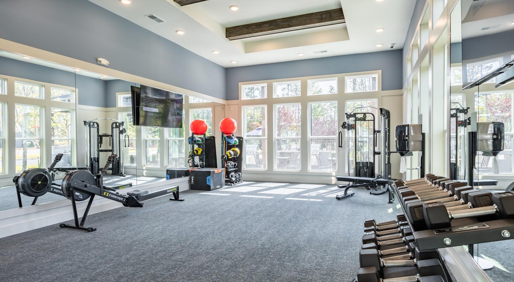 • a gym with exercise equipment